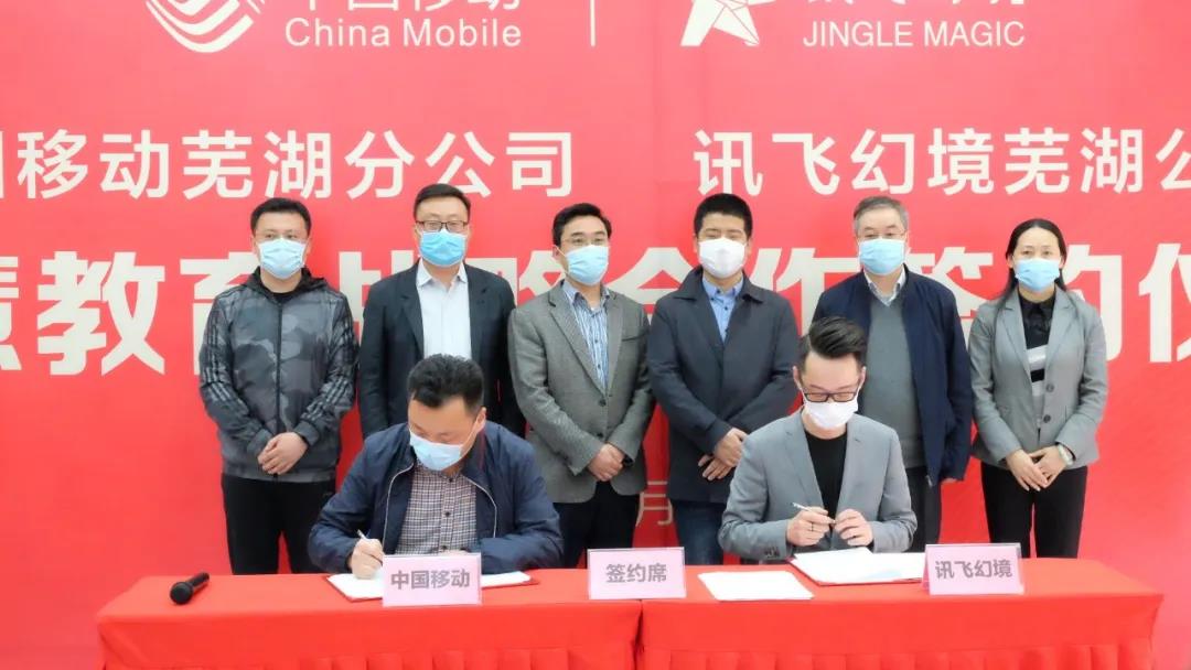 鏡湖區(qū)副區(qū)長束曉偉及政府領(lǐng)導(dǎo)、相關(guān)單位負責(zé)人,訊飛幻境政企事業(yè)部執(zhí)行總裁李寧、中國移動蕪湖分公司總經(jīng)理楊震等出席并見證簽約儀式,共同為雙方“智慧教育合作基地”揭牌。